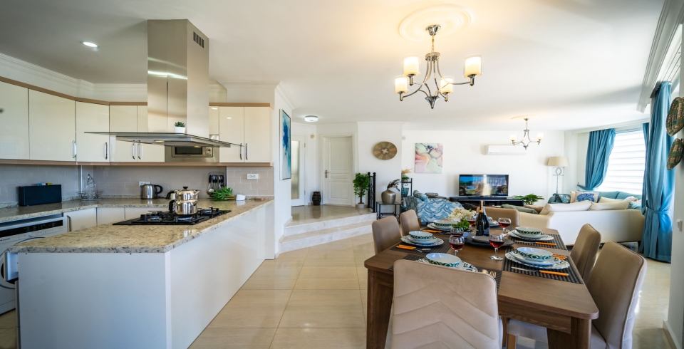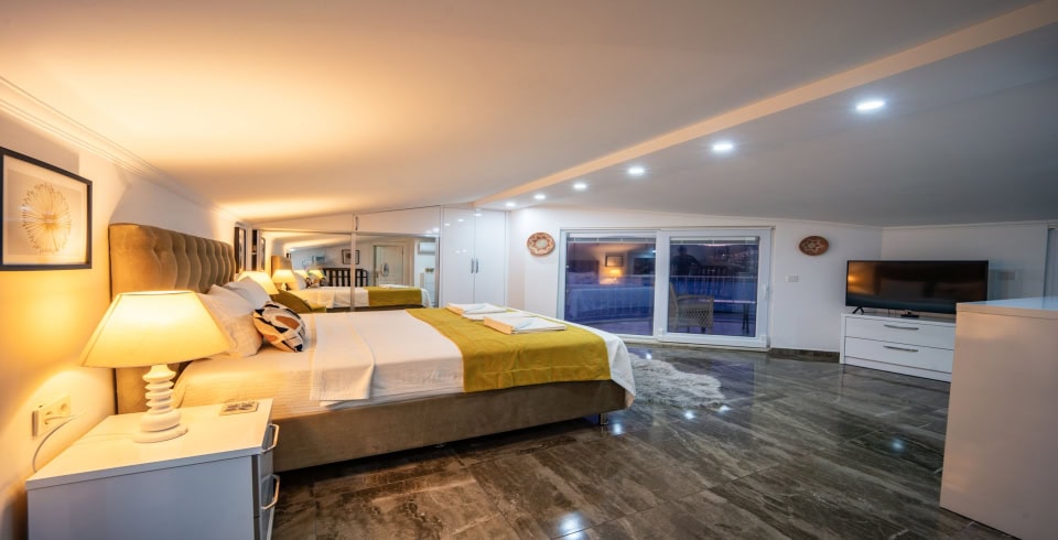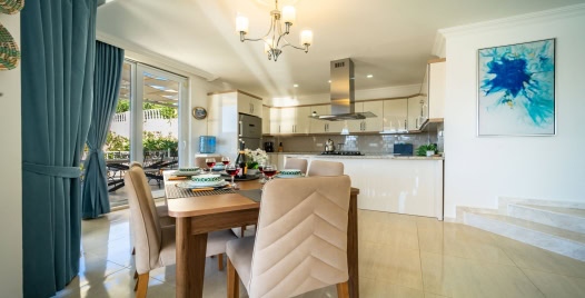 Villanın modern iç tasarımı, şık detaylarla tamamlanmış olup konforlu bir tatil için her şey düşünülmüştür. Deniz manzarasına karşı kahvaltı yapabilir, gün boyu özel havuzda serinleyerek tatilin keyfini çıkarabilirsiniz. Merkeze kolay ulaşımı sayesinde, restoranlar, kafeler ve alışveriş noktaları da birkaç dakika uzaklıkta.