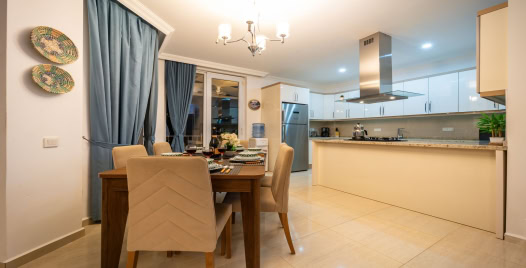 Mutfak: Modern Amerikan mutfakta buzdolabı, çamaşır makinesi, bulaşık makinesi, fırın, mikrodalga fırın, tost makinası, 4'lü ocak, elektrikli su ısıtıcısı, yemek takımı ve mutfak araç gereçleri bulunmaktadır.