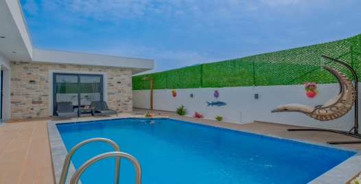 Villanın özel korunaklı yüzme havuzu, mahremiyet arayan misafirler için mükemmel bir alan sunarken, ferah bahçesi, sevdiklerinizle keyifli vakit geçirmeniz için size huzurlu bir ortam sağlar. Ayrıca, jakuzisiyle tatilinize ekstra bir lüks dokunuş katabilirsiniz. Güneşin altında serinleyip, akşamları jakuzide rahatlayarak yorgunluğunuzu geride bırakabilirsiniz.