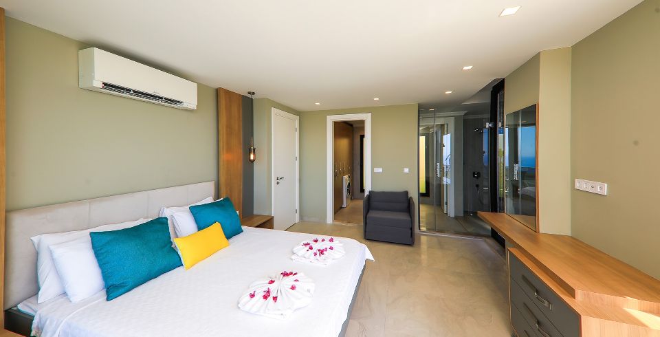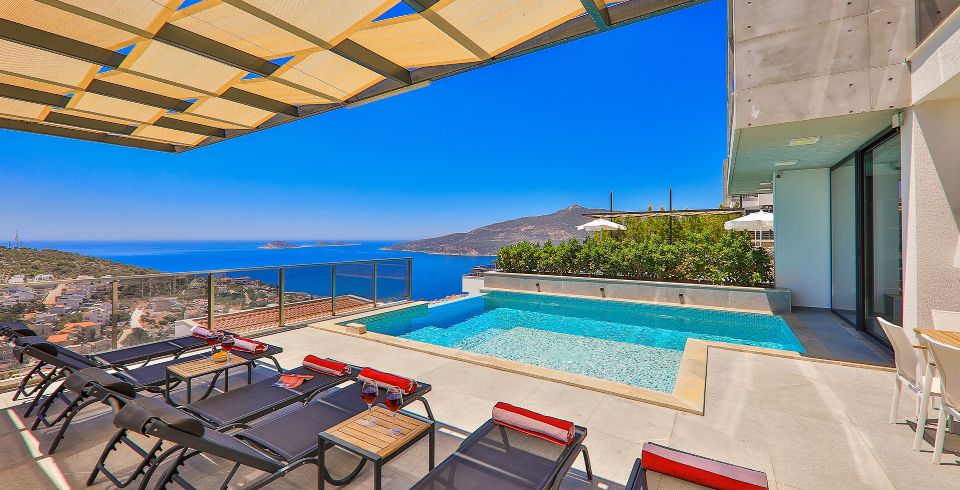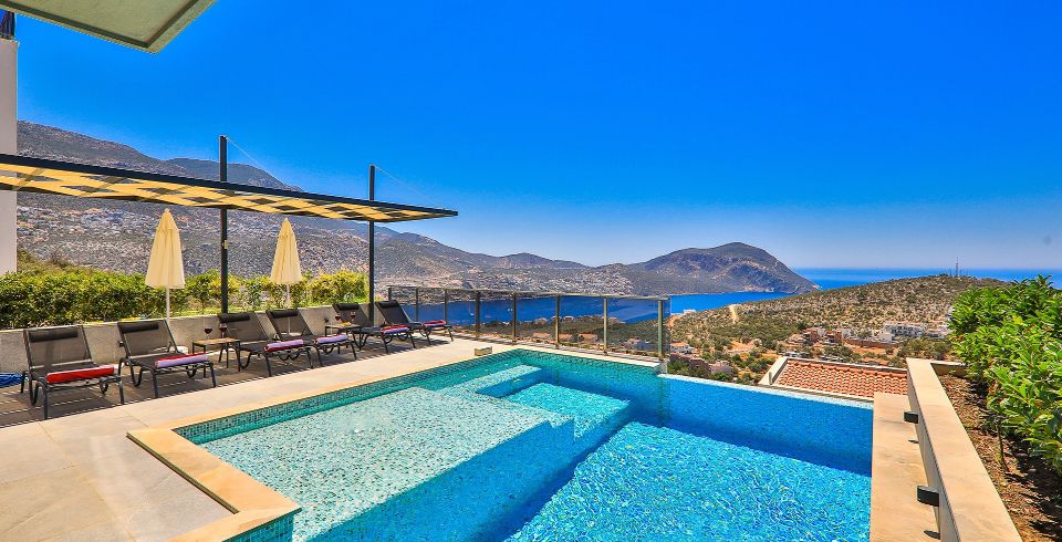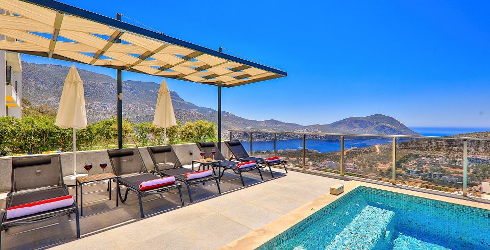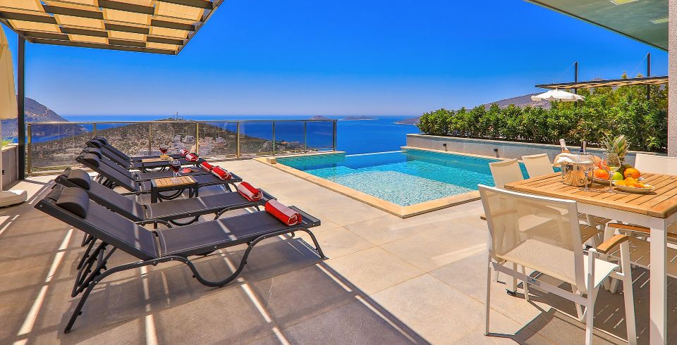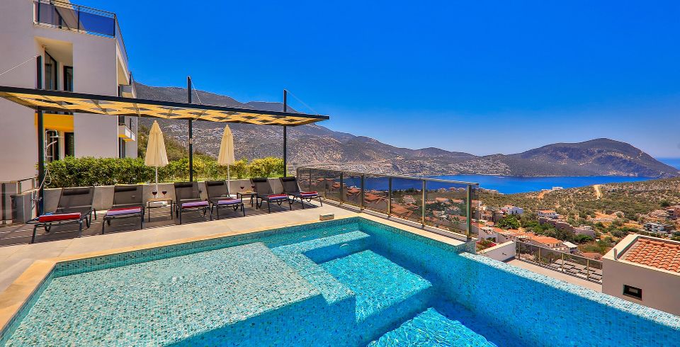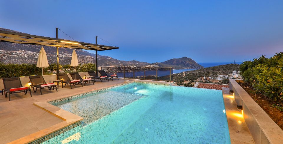 Kalkan’ın nefes kesen şehir ve deniz manzarasını ayaklarınızın altına seren deniz manzaralı lüks kiralık villamız Villa Skylight sizlere sevdiklerinizle birlikte keyifli bir tatil imkanı sunuyor Kalamar mevkiinde bulunan villamızda 3 adet yatak odası bulunmakta olup 6 kişi konaklama kapasitelidir. Özellikle kalabalık aileler ve arkadaş grupları için uygun olan merkeze yakın kiralık villamız, sizlere kusursuz bir tatil sunabilmek için özenle tasarlanmıştır. Lüks ve konforlu yapısı ile dikkat çeken villamızda kullanılan eşyaların tümü konforlu ve birinci kalitededir. Villamızın düzeni en alt katta iki yatak odası ve bir salon, giriş katta salon ve Amerikan mutfak, birinci katta bir yatak odası ve çatı katında bir yatak odası şeklindedir. Bir yatak odası jakuzili kiralık villamız oldukça geniş bir kullanım alanına sahiptir. Manzara eşliğinde keyifli saatler geçirebileceğiniz villamızın bahçesinde yemek saatleriniz için barbekü ve yemek masası bulunmaktadır. ayrıca aktivite için spor salonu bulunmaktadır .Spor salonumuzda bilardo , masa tenisi ,langırt ve koşu bandı diğer spor ekipmanları mevcuttur. Merkeze ve denize yakın lüks kiralık villamızda keyifli bir tatil geçirebilir, sevdiklerinizle birlikte güzel anılar biriktirebilirsiniz. Kalabalık aileler için eğlenceli tatil sunmaktadır.