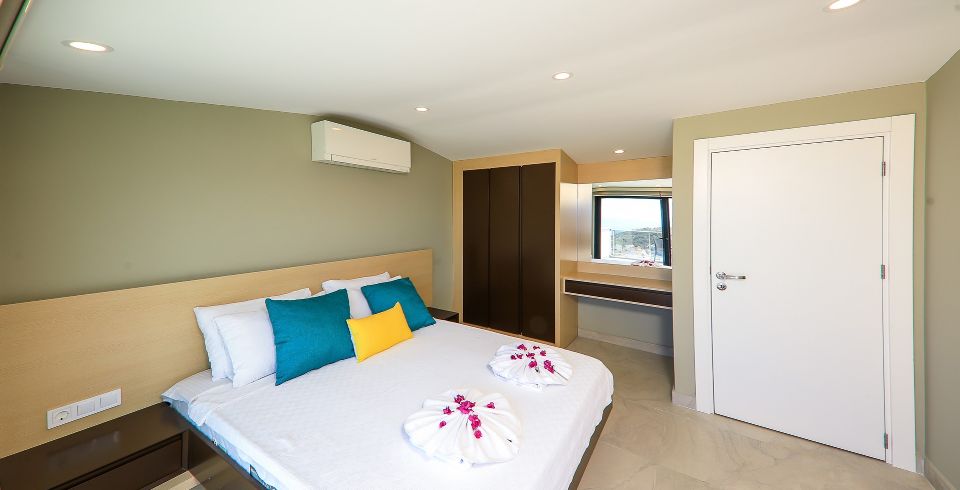 1.Yatak Odası: 1 adet çift kişilik yatak, komodin, klima, elbise dolabı, banyo ve tuvalet bulunmaktadır.