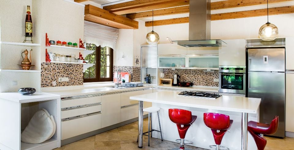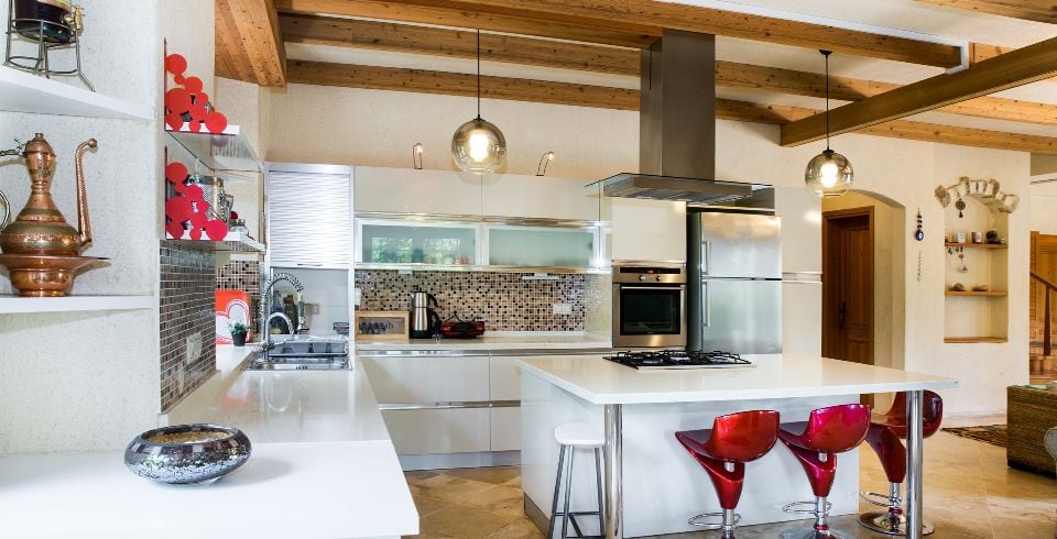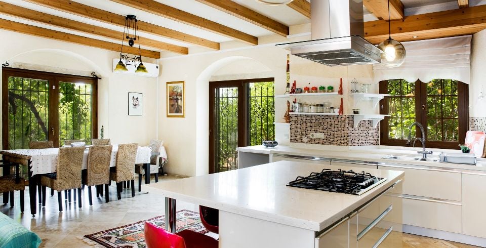 Mutfak : Geniş Amerikan mutfak, klima, yemek masası, buz dolabı, bulaşık makinası, çamaşır makinası, ankastre fırın, 4'lü ankastre ocak, kettle, tost makinesi bulunmaktadır.