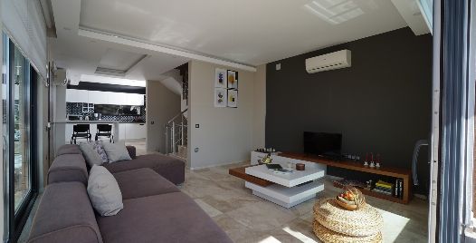 Salon : Salonda klima uydu alıcı, TV, DVD Player, oturma grubu, lavabo yer almaktadır. Salon havuz katındadır. Bu alanda da oturma gurubu ,masa ve sandalye bulunur.