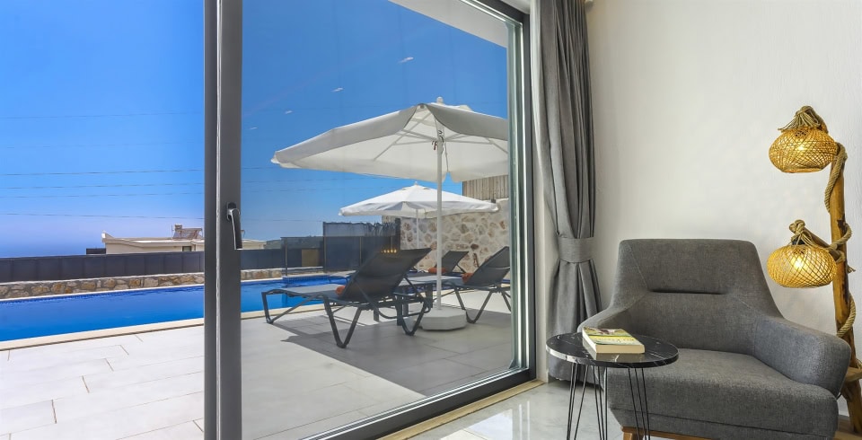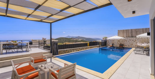 Villamız Kalkan Akbel Bölgesi’nde bulunmaktadır. Doğa içerisinde deniz manzaralı bu lüks muhafazakar villa balayı çiftlerimiz için de oldukça uygundur. 2 yatak odalı 4 kişilik kapasiteye sahiptir. Konforunuz için özenle dizayn edilmiş olup lüks bir tatil için ihtiyacınız olan her detayı barındırmaktadır. Muhteşem bir deniz manzarasına sahip olup , 2 yatak odası ve salonu da havuz terasına çıkış yapılmaktadır. Villa soley de sauna ve jakuzi bulunmaktadır. Bu villamız eşinizle veya arkadaşınızla güzel bir tatil seçeneği sunmaktadır.