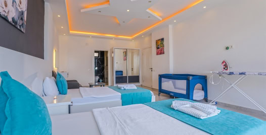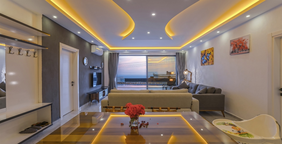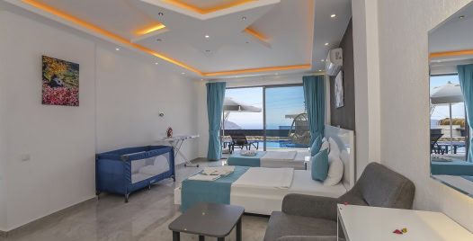 Salon : Salonda klima uydu alıcı, TV, oturma grubu, lavabo yer almaktadır. Salon havuz katındadır. En üst katta dinlenmek ve güneşlenmek için çok geniş bir seyir terası daha vardır. Bu alanda da oturma gurubu ,masa ve sandalye bulunur.