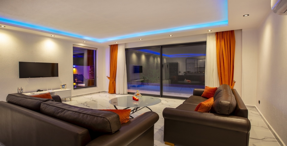 Salon : Havuz terasına direkt çıkışı olan salonumuzda LCD televizyon, uydu alıcı, modem, oturma grubu, yemek masası ve sandalyeler bulunmaktadır.