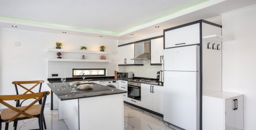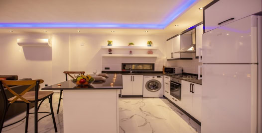 Mutfak : Bir evin mutfağında olması gereken her şeyi villamızda bulabilirsiniz. Modern Amerikan mutfağımızda buzdolabı, çamaşır makinesi bulaşık makinesi, 4’lü ocak, fırın, mikrodalga fırın, ekmek kızartma makinesi, elektrikli su ısıtıcısı, fırın, çatal-bıçak takımı, tencere-tava takımları gibi bütün mutfak araç-gereçleri eksiksiz bir şekilde bulunmaktadır.