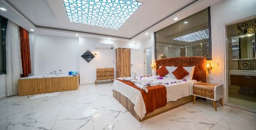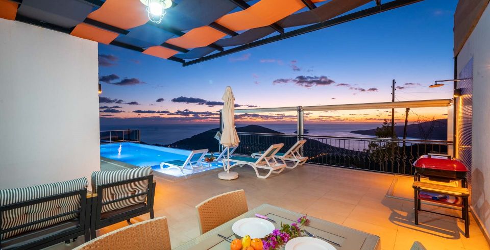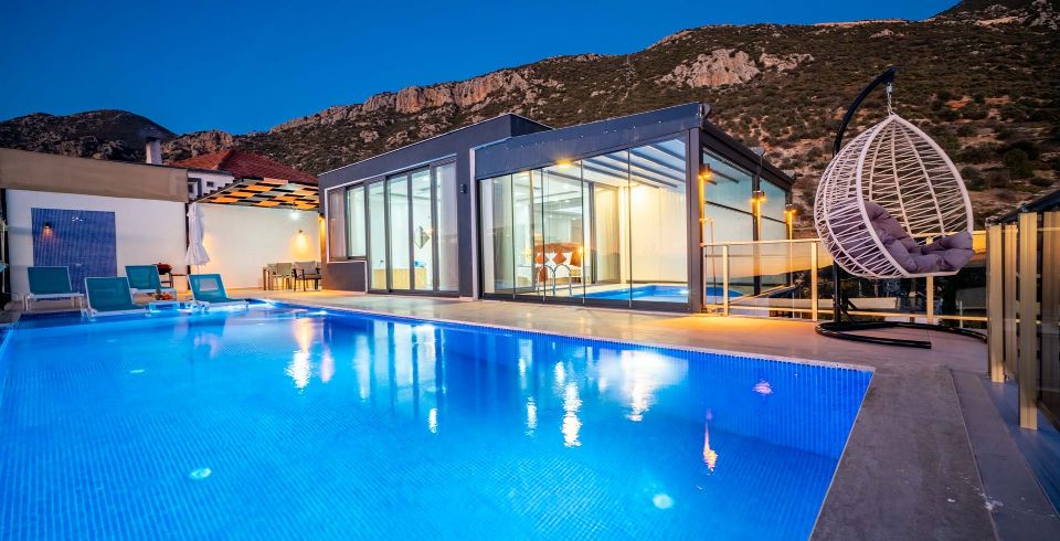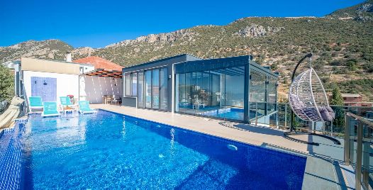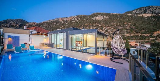 Kiralık villamız Kalkan Kördere mevkisin de konumlanmıştır. 2 yatak odalı 4 kişilik kapasiteye sahiptir. Muhafazakar ailelere uygun olarak tasarlanmıştır. Jakuzili ve kapalı havuzu olup yaz kış aktif balayı villasıdır. Villamızın özel yüzme havuzu ve havuz terası perdeleme sistemi ile açıp kapatmalı özelliğine sahiptir. Villamızda aktivite olarak masa tenisi, langırt ve spor aletleri bulunmaktadır.