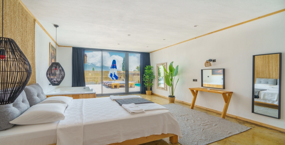 Kalkan’ın doğayla iç içe, huzur dolu bölgelerinden Bezirgan’da yer alan Villa Stay Duo, bohem tarzda dekore edilmiş sıcak ve özgün atmosferiyle öne çıkıyor. 2 yatak odası ve 4 kişilik kapasitesiyle, özellikle çiftler ve küçük aileler için ideal bir konaklama sunuyor.