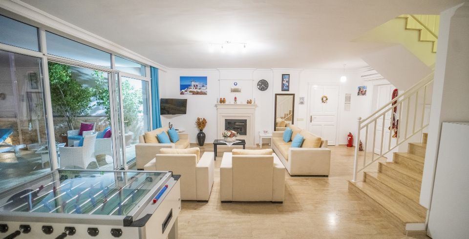 Havuz ve Bahçe : Kiralık yazlık tatil villamızın Özel yüzme havuzu ve Havuz terasında özel yüzme havuzu, langırt , kondisyon bisikleti , salıncak , okey şezlonglar, güneş şemsiyesi, masa ve sandalyeler, mangal bulunmaktadır.