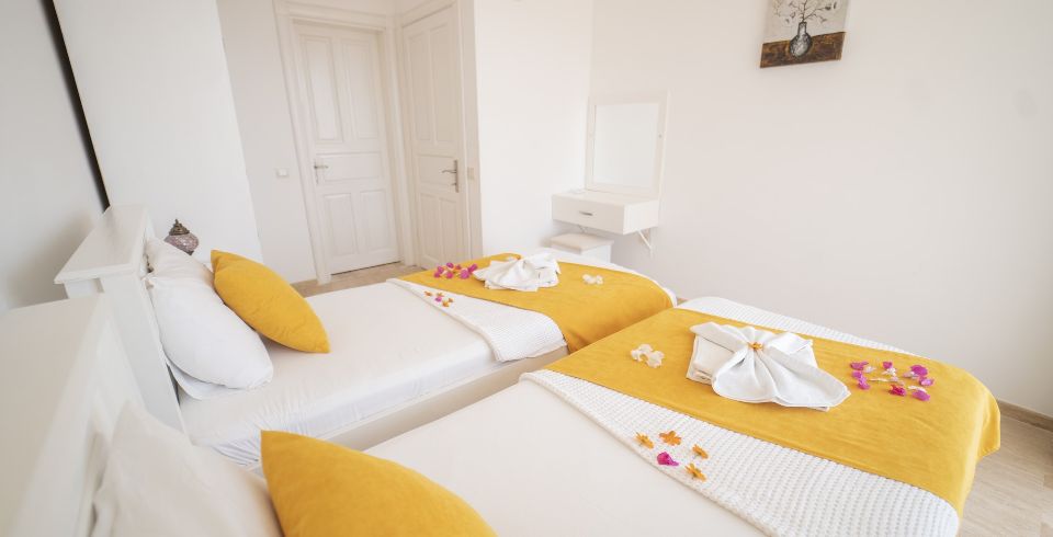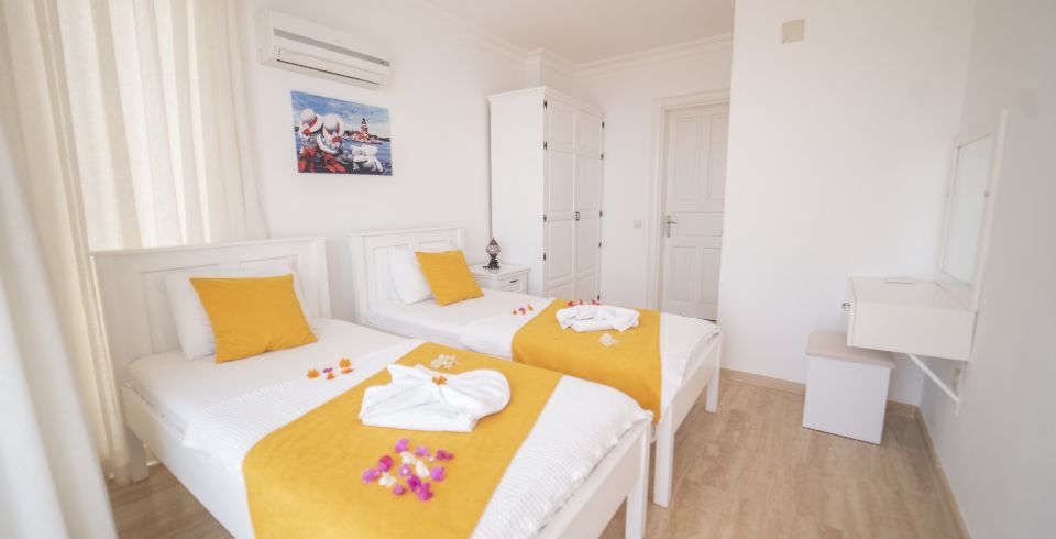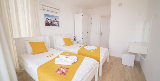 2. Yatak Odası : 2 adet tek kişilik yatak, klima, makyaj masası, elbise dolabı, komodin, banyo ve lavabo bulunmaktadır.