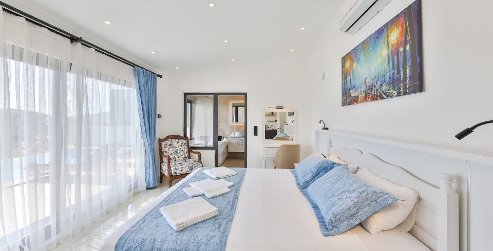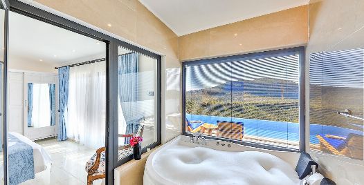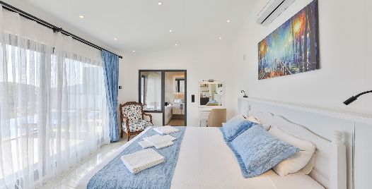 1. Yatak Odası : Çift kişilik yatak, klima, komodin, elbise dolabı, makyaj masası, banyo ve lavabo, jakuzi bulunmaktadır.