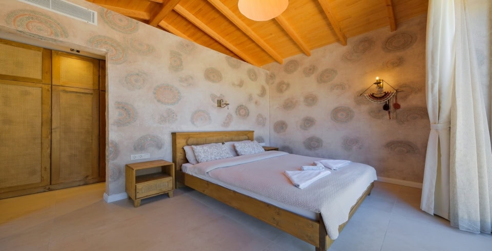 1.Yatak Odası: Çift kişilik yatak, Elbise dolabı, Komodin, Makyaj masası, klima,banyo ve tuvalet bulunmaktadır.