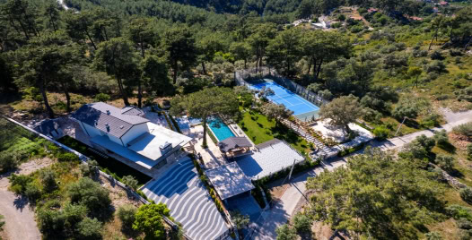 Villada yer alan ısıtmalı dış havuz, tuzlu su havuz sistemi ve sauna, yılın her döneminde dinlendirici bir atmosfer sağlarken; özel tenis kortu, tatilinize hareket ve eğlence katar. Modern iç dizaynı ve özenle düzenlenmiş geniş bahçesi, hem estetik hem de işlevsel bir yaşam alanı sunar.