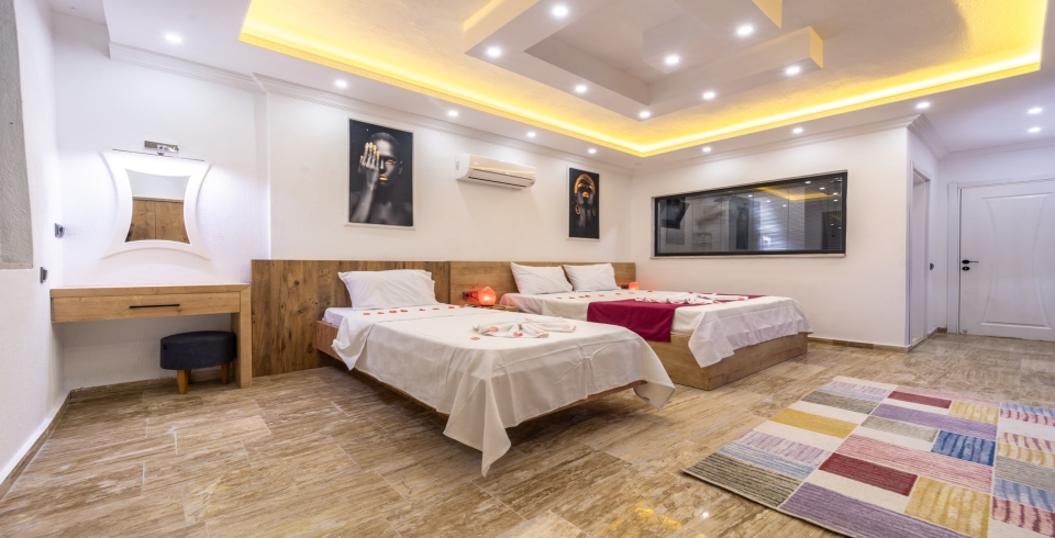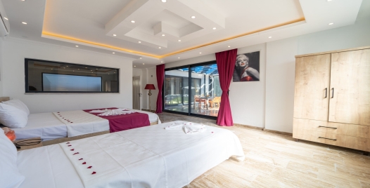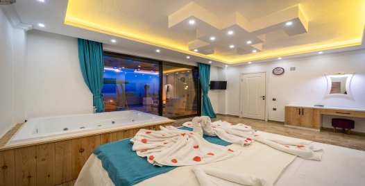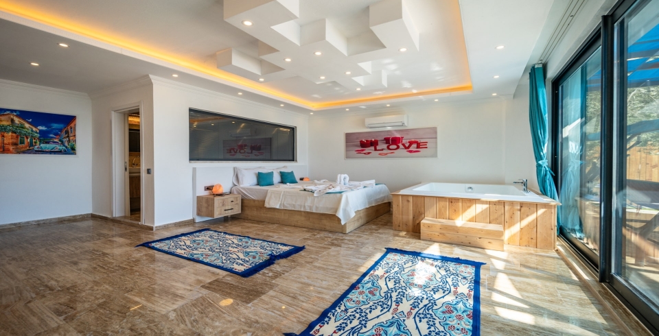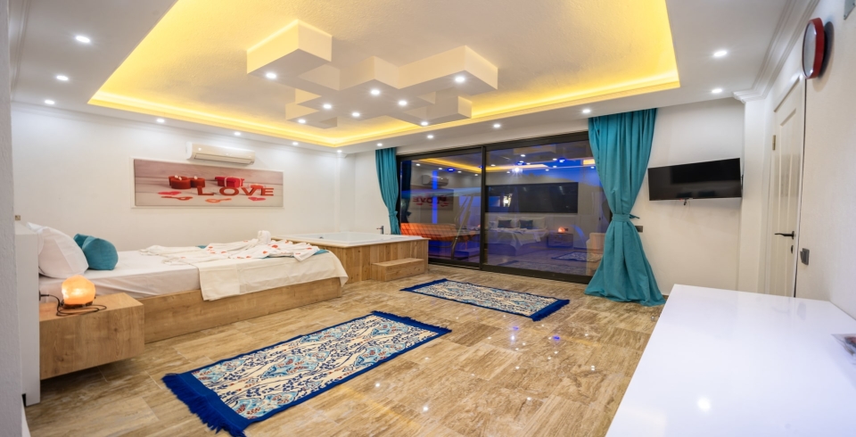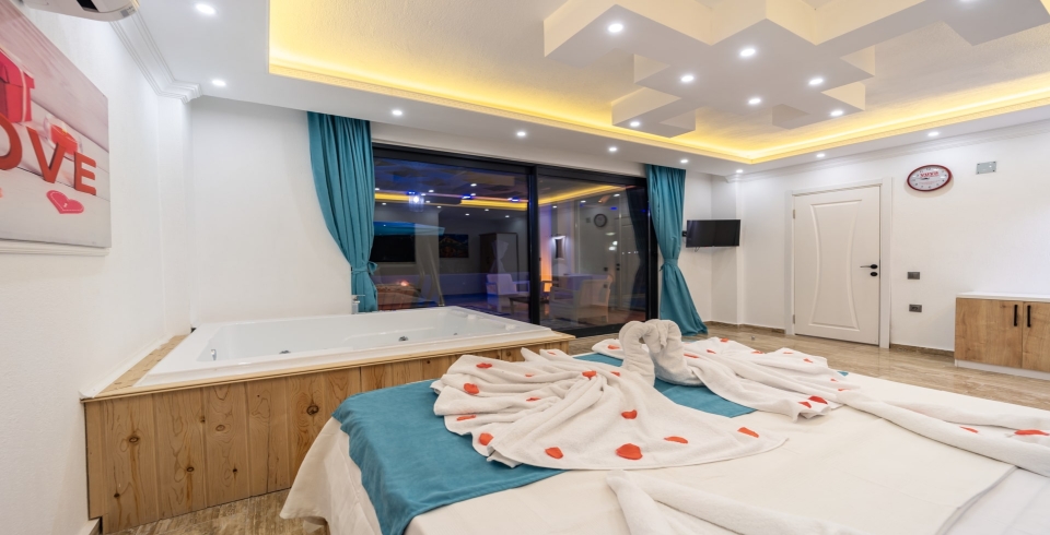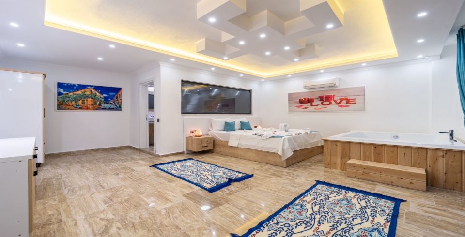 1. Yatak Odası : Çift kişilik yatak, elbise dolabı, jakuzi, klima, TV, komodin, banyo ve tuvalet bulunmaktadır.