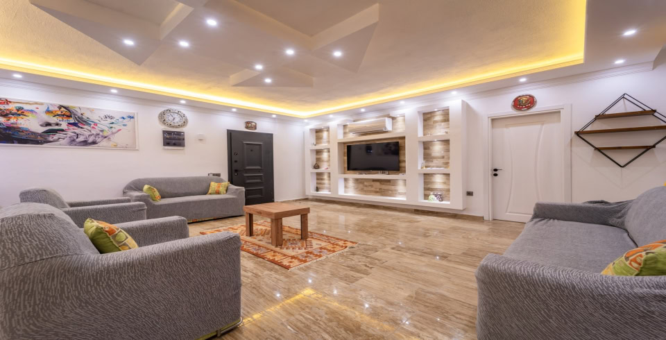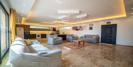 Salon : Oturma grubu, TV, sehpa, Klima bulunmaktadır.