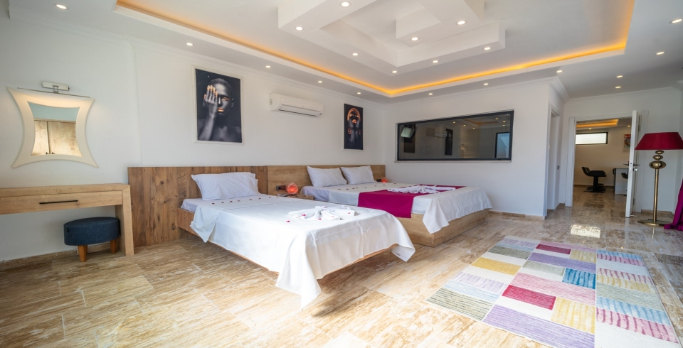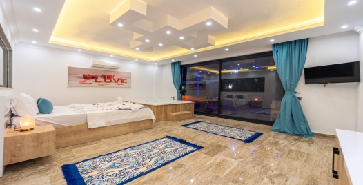 Villa Süper Mario, Kalkan İslamlar bölgesinin huzurlu ve doğal atmosferinde yer alan bu özel villa, 2 yatak odasıyla 5 kişiye kadar konaklama imkanı sunmaktadır. Muhafazakar ailelere uygun tasarımı ve izole konumu ile sakin ve keyifli bir tatil deneyimi yaşatır. Villada sauna, Türk hamamı ve masa tenisi gibi eğlenceli ve rahatlatıcı aktiviteler sunulmaktadır. Doğa manzarasına karşı sessiz ve huzurlu bir ortamda, kuş sesleri eşliğinde unutulmaz bir tatil fırsatı sunar.