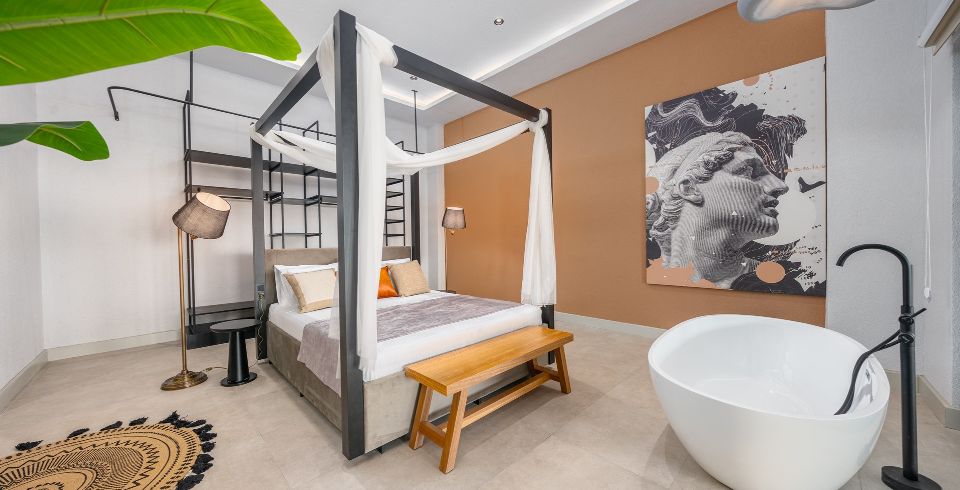 1. Yatak Odası : Oda içerisinde 1 adet çift kişilik yatak, komodin, küvet ve özel banyo/WC bulunmaktadır.