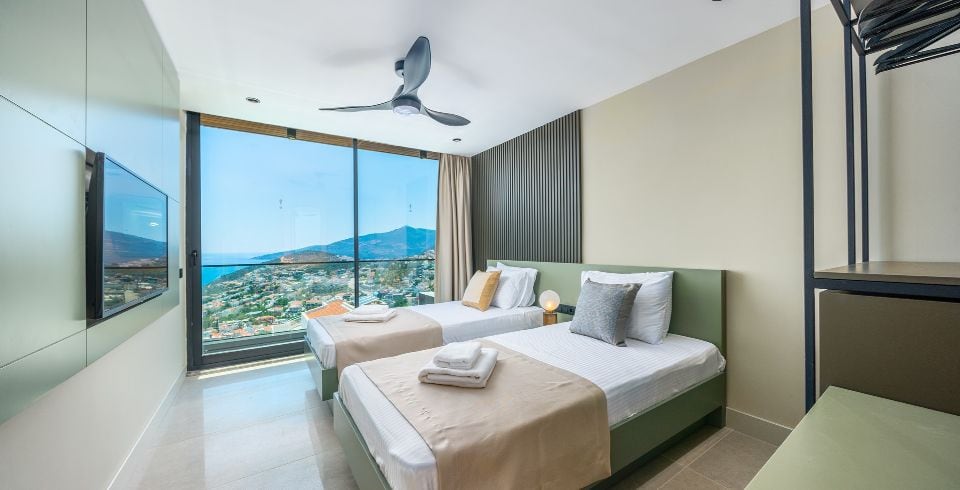 3. Yatak Odası : Oda içerisinde 2 adet tek kişilik yatak, komodin, makyaj masası, TV ve özel banyo/WC bulunmaktadır.