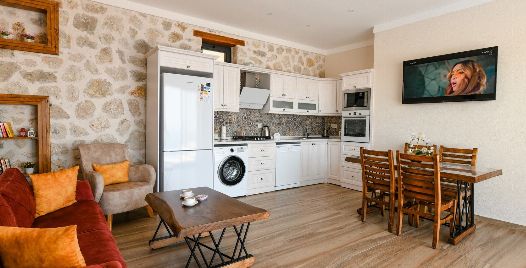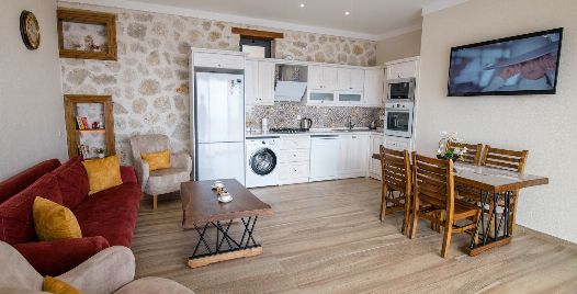 Salon: Villamızın salonunda oturma grubu, TV, uydu alıcı, WİFİ ,yemek masası bulunmaktadır.