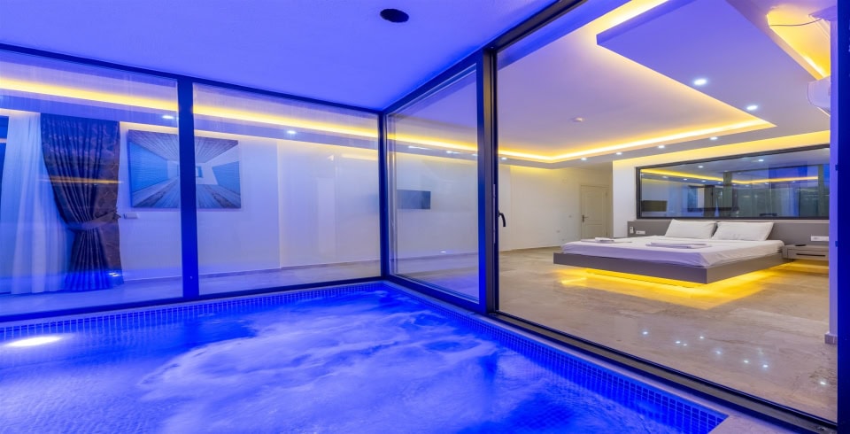 Havuz : Villa içerisinde 4,5 m x 3,5 m ölçülerinde kapalı havuz yer almaktadır. Havuz terası korunaklı olup dışarıdan gözükmemektedir.