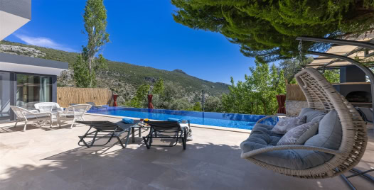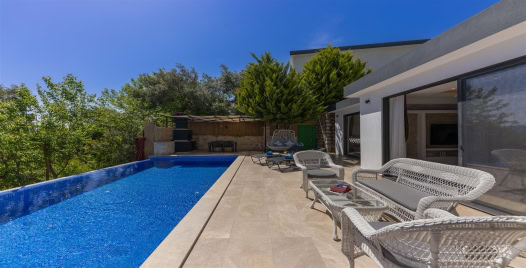 Kalkan İslamlar Bölgesinde 2 yatak odalı 4 kişilik özel yüzme havuzuna sahip kiralık muhafazakar villamızdır. Villamızda bir ana yatak odası ve 1 tane de çocuk yatak odası bulunmaktadır. Villamızın içerisinde ayrıca kış ve bahar aylarında kullanıma açık ısıtma havuzu bulunmaktadır. Villamız balayı çiftleri ve çekirdek aileler için uygun bir seçenek olup doğa ile iç içe tatil düşünenler için uygun tatil villasıdır.