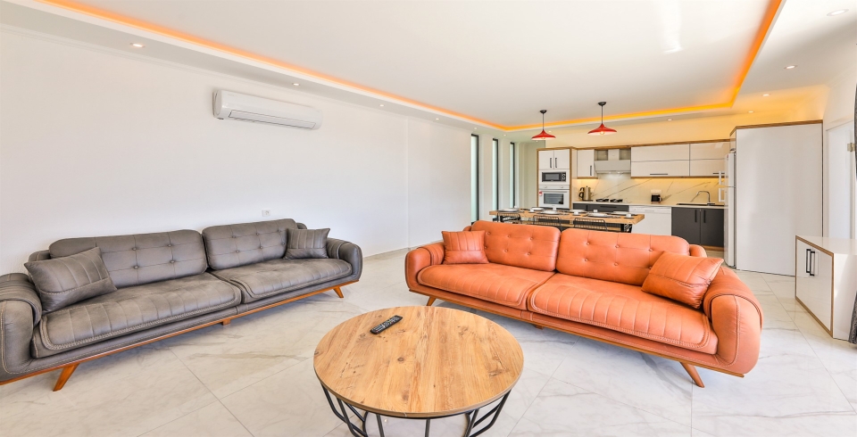 Salon : Havuz terasına direkt çıkışı olan büyük, konforlu salonumuzda oturma grubu, klima, LCD TV, sehpa, uydu alıcı bulunmaktadır.