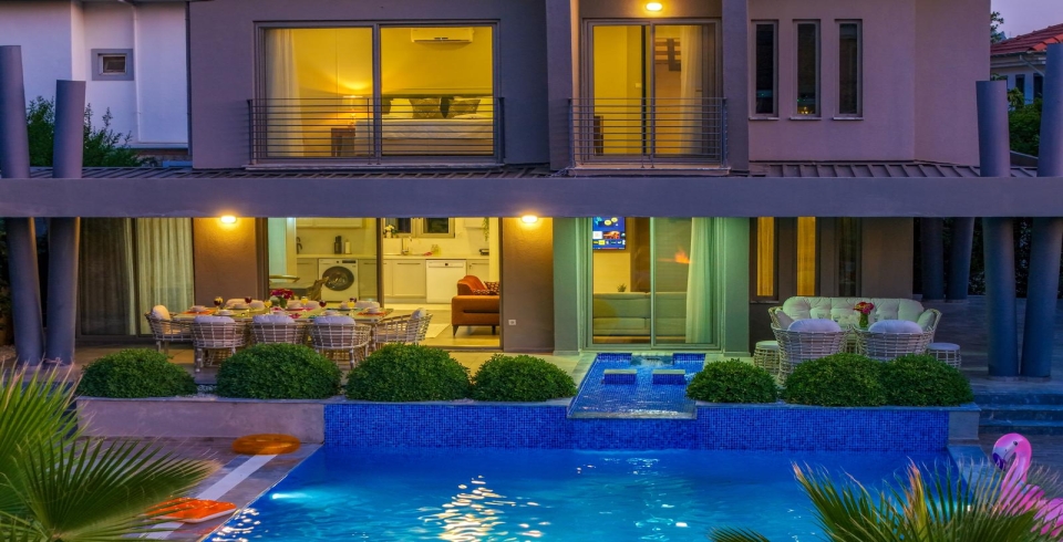 Villa Swarovski, Ölüdeniz plajına, marketlere ve restoranlara kolay ulaşım imkânı sağlayan merkezi konumuyla dikkat çeker. Gün boyunca havuzun tadını çıkarabilir, akşamları ise Fethiye’nin canlı merkezinde keyifli vakit geçirebilirsiniz. Doğa manzarası ve sessiz ortamı sayesinde huzur arayan misafirler için de ideal bir tercihtir.