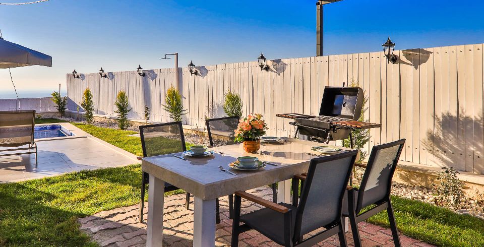 Havuz ve Bahçe : Korunaklı özel yüzme havuzu, şezlong, şemsiye, oturma yeri, yemek masası ve mangal bulunmaktadır.