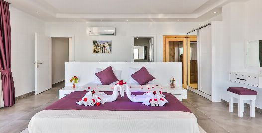 Yatak Odası : Çift kişilik süit yatak odası, klima, elbise dolabı, makyaj masası, komodin, jakuzi, saç kurutma makinası, lavabo ve banyo bulunmaktadır.
