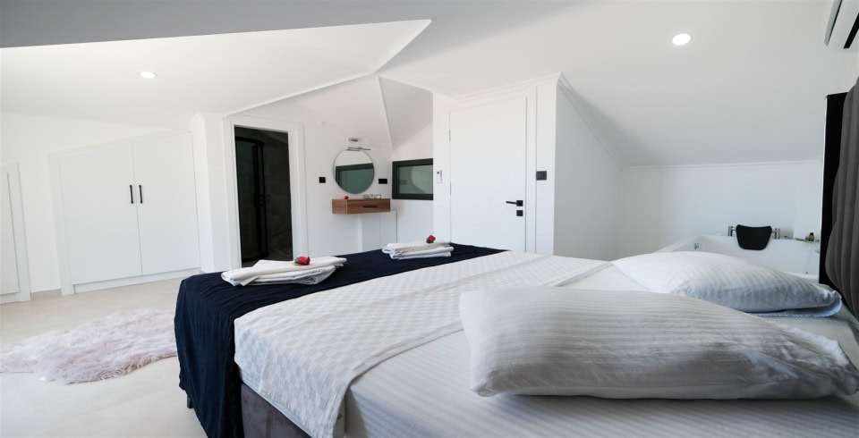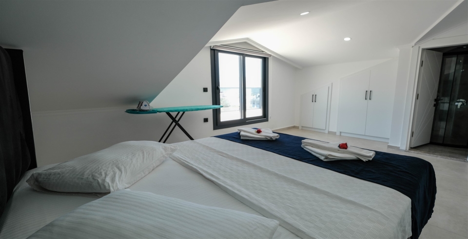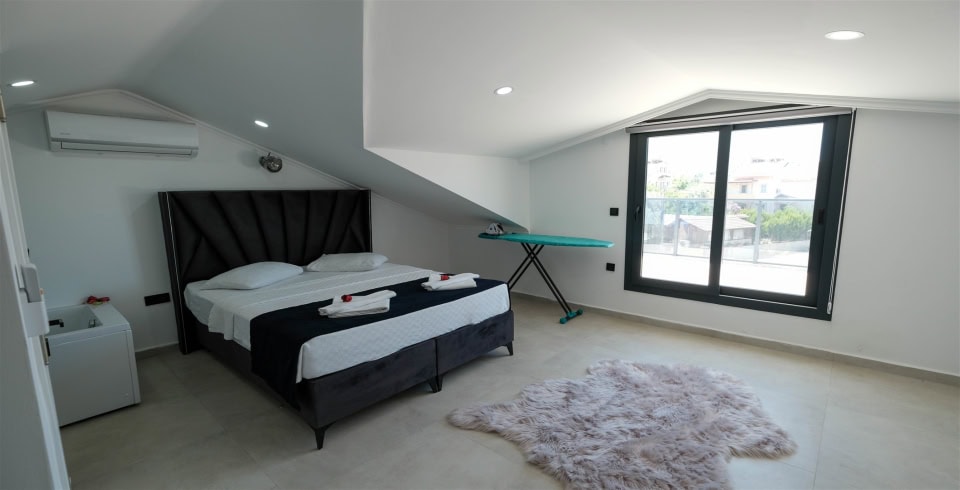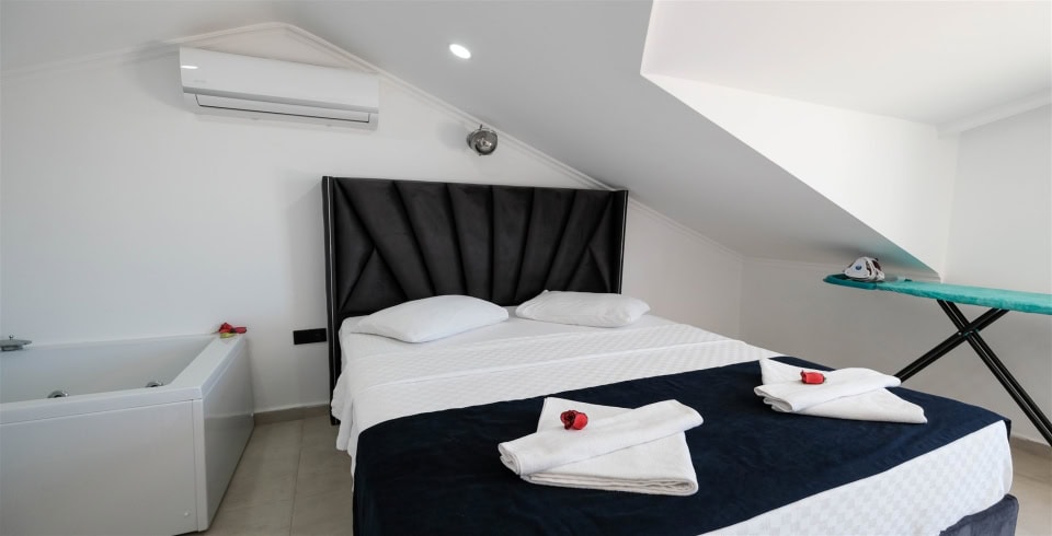 1.Yatak Odası: Çift kişilik yatak, Komodin, Klima, Elbise dolabı, Jakuzi, Banyo ve Balkon bulunmaktadır.