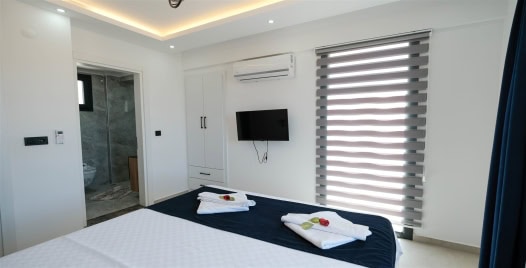 2.Yatak Odası: Çift kişilik yatak, Komodin, Klima, Elbise dolabı, Banyo ve Balkon bulunmaktadır.
