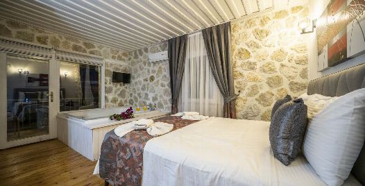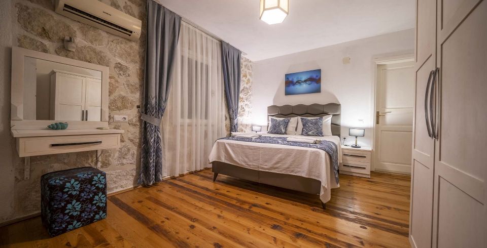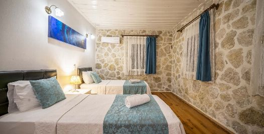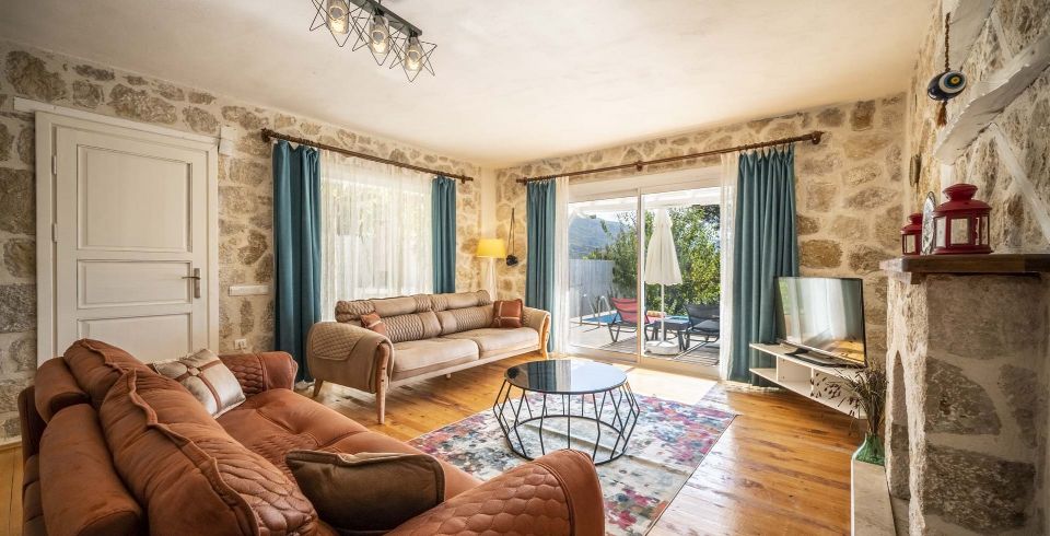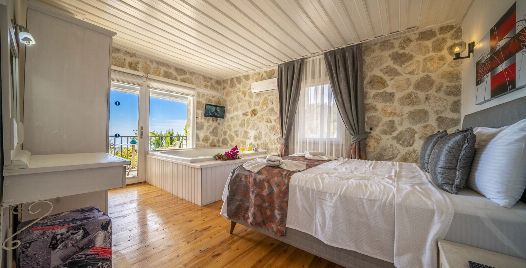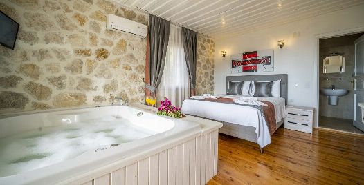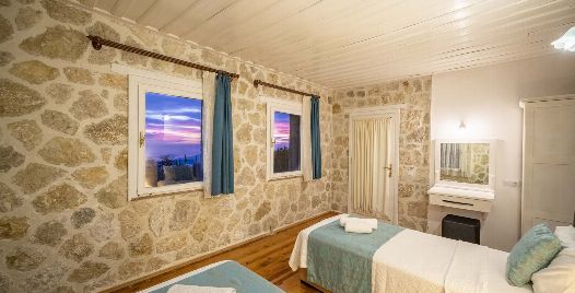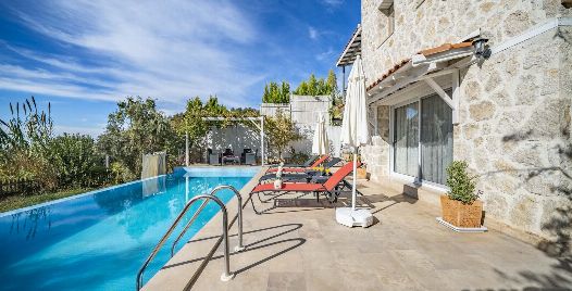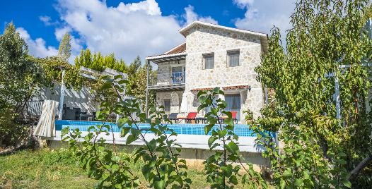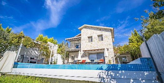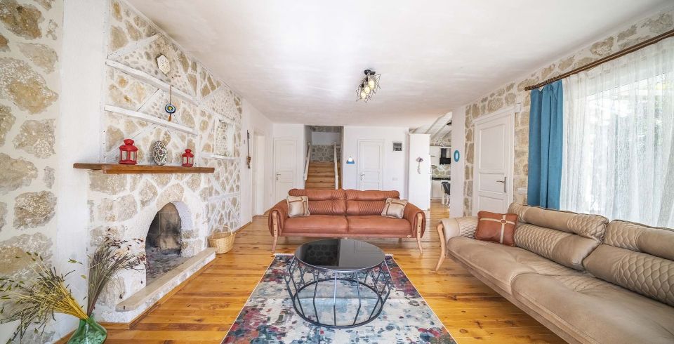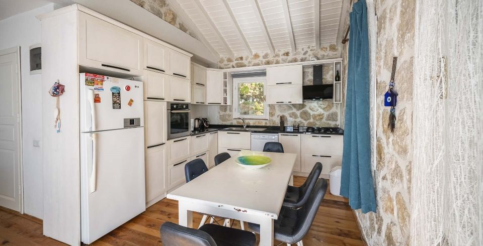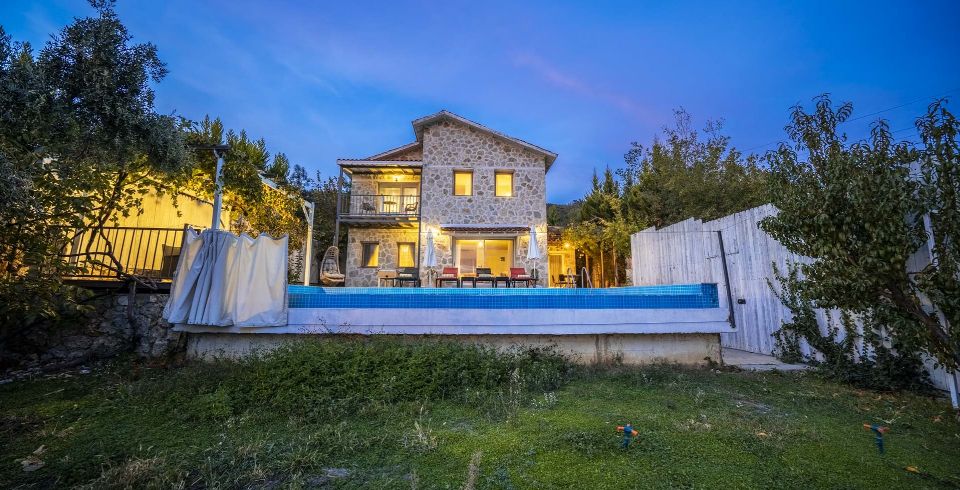 İslamların yemyeşil doğası içerisinde bağ ve bahçelerinin arasında konumlanmış taş ve ahşabın bir araya gelmesiyle muhteşem taş ev villamız ortaya çıkmıştır. Evin tabanı ve tavanı sedir ahşap kaplama olup harika bir sedir kokusu vardır. Villanın etrafı yeşil asma bahçesiyle çevrili olup etraftan havuz terası gözükmemektedir. Köy merkezine, restaurantlara ve marketlere sadece 300 m mesafededir. 3 yatak odası bulunan villamız 6 kişi konaklama kapasitesine sahip olup yatak odasının birinde jakuzi bulunmaktadır.