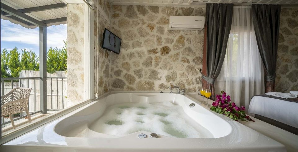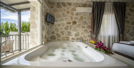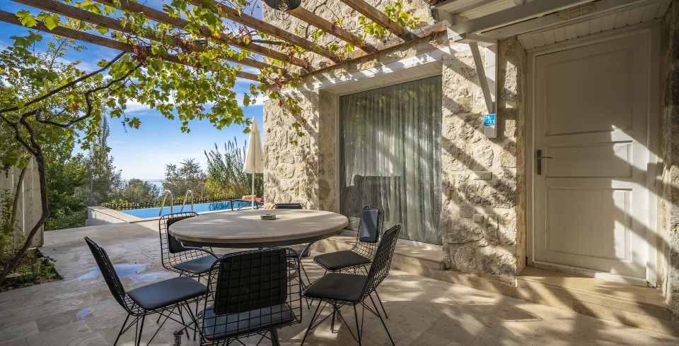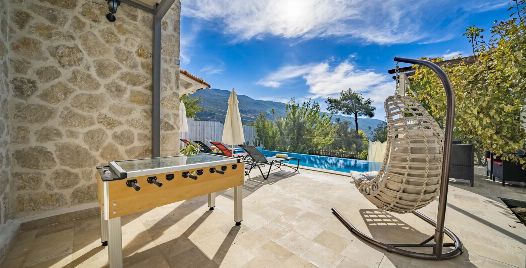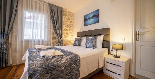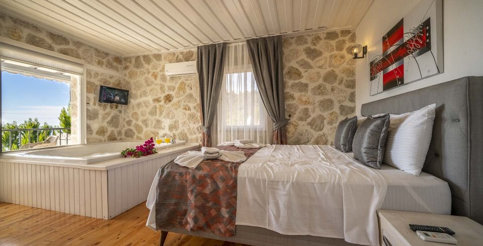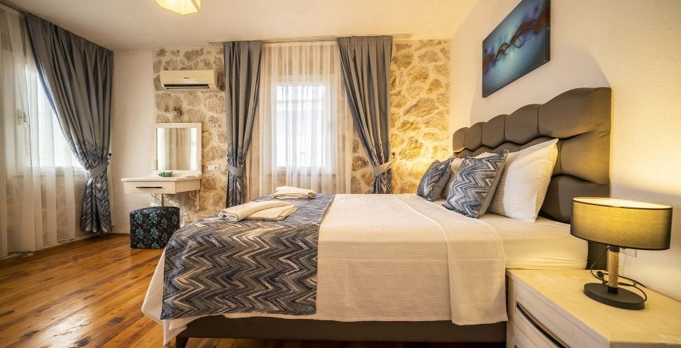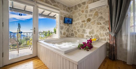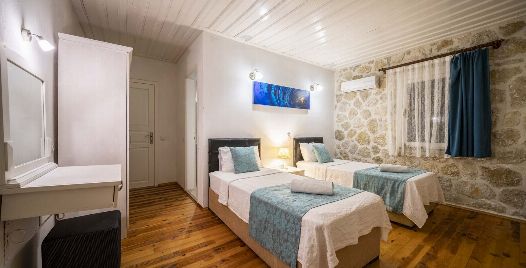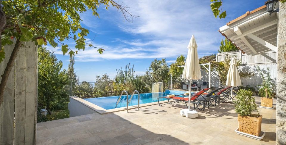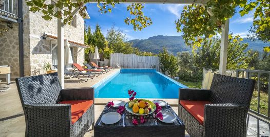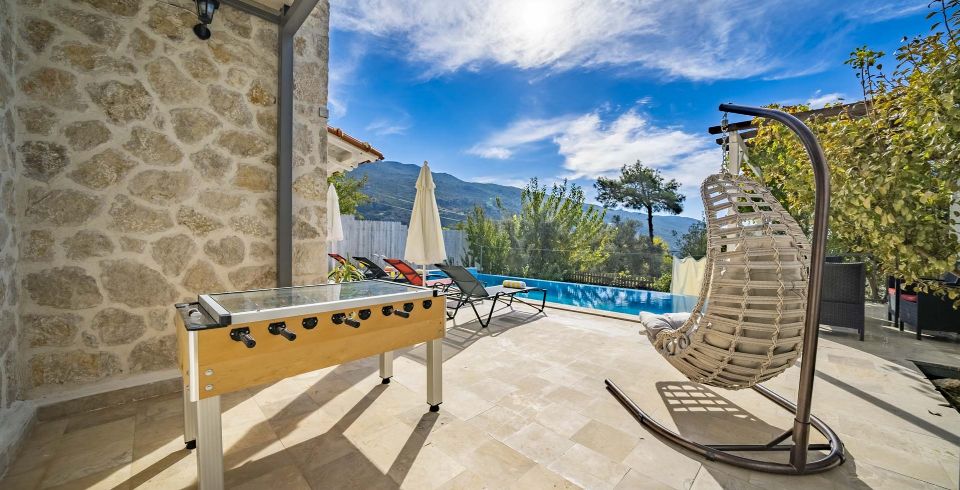 İslamların yemyeşil doğası içerisinde bağ ve bahçelerinin arasında konumlanmış taş ve ahşabın bir araya gelmesiyle muhteşem taş ev villamız ortaya çıkmıştır. Evin tabanı ve tavanı sedir ahşap kaplama olup harika bir sedir kokusu vardır. Villanın etrafı yeşil asma bahçesiyle çevrili olup etraftan havuz terası gözükmemektedir. Köy merkezine, restaurantlara ve marketlere sadece 300 m mesafededir. 3 yatak odası bulunan villamız 6 kişi konaklama kapasitesine sahip olup yatak odasının birinde jakuzi bulunmaktadır.