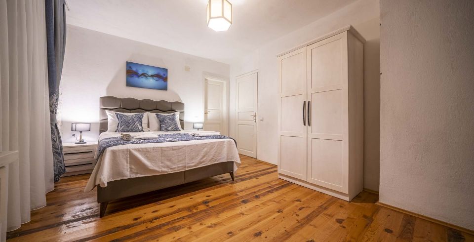 1. Yatak Odası: Çift kişilik yatak, klima, komodin, elbise dolabı, makyaj masası, berjer, banyo ve tuvalet bulunmaktadır.