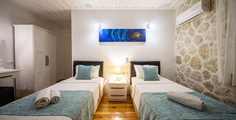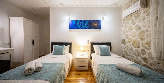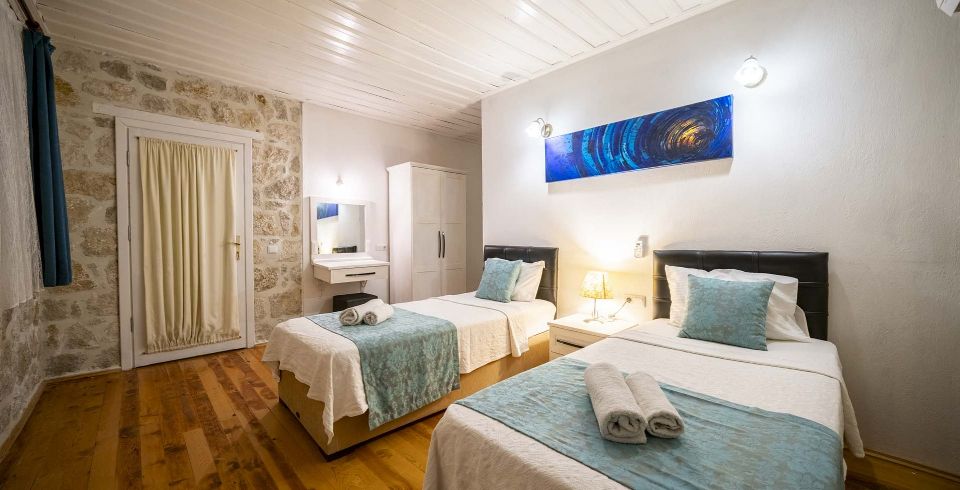 3. Yatak Odası: 2 adet tek kişilik yatak, klima, komodin, elbise dolabı, makyaj masası, berjer, balkon, banyo ve tuvalet bulunmaktadır. Odamız deniz ve doğa manzaralıdır.
