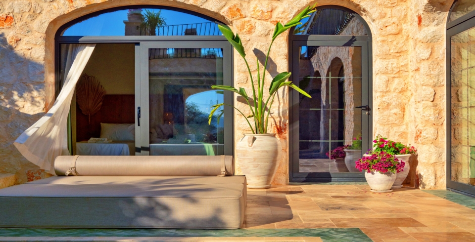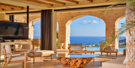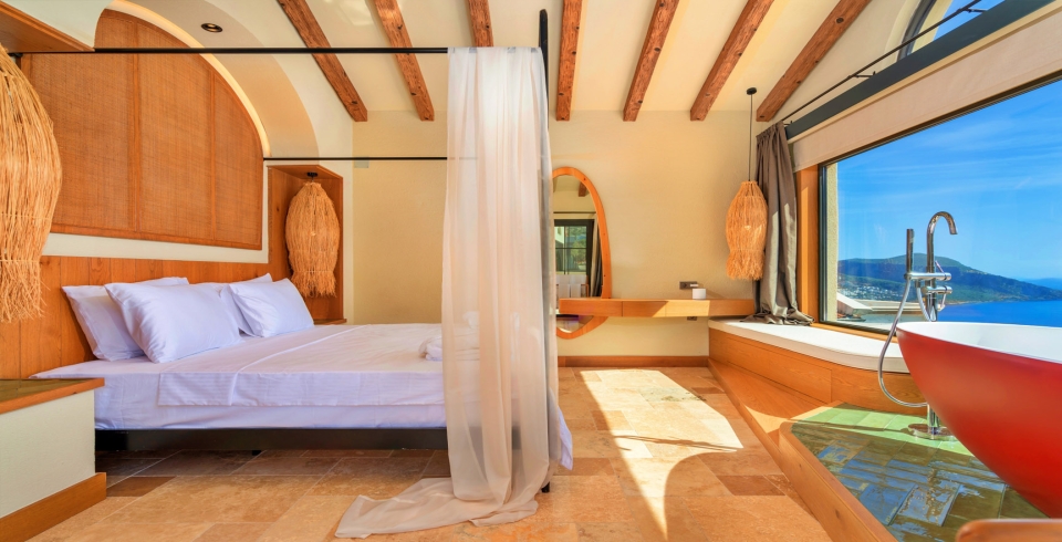 Villa Thalia, Kalkan' Kızıltaş mevkiinde konumlanmış, deniz manzaralı lüks bir villadır. Beş yatak odası ve beş banyosu ile toplam 10 kişilik konaklama kapasitesi sunar; bu nedenle geniş aileler ve arkadaş grupları için ideal bir tercih oluşturmaktadır. Modern mimarisi, Likya esintili taş duvarları, sütun ve kemer detaylarıyla zarif bir estetik yakalar.