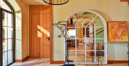 Villanın açık plan salonu, konforlu oturma alanı, büyük cam cepheler ve klima ile tasarlanmıştır; mutfak kısmı ise tam donanımlı olup Amerikan mutfak düzeninde temel pişirme ekipmanları, fırın, ocak, buzdolabı ve mikrodalga gibi gereçleri içerir.