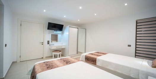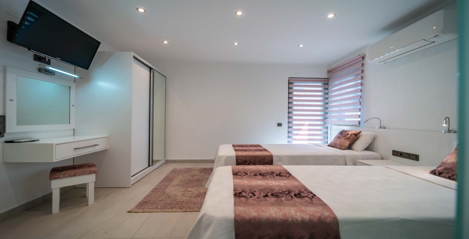 3. Yatak Odası : İki adet tek kişilik yatak, komodin, elbise dolabı, makyaj masası, klima, banyo ve tuvalet bulunmaktadır.