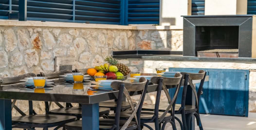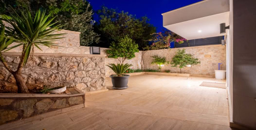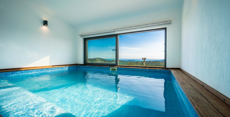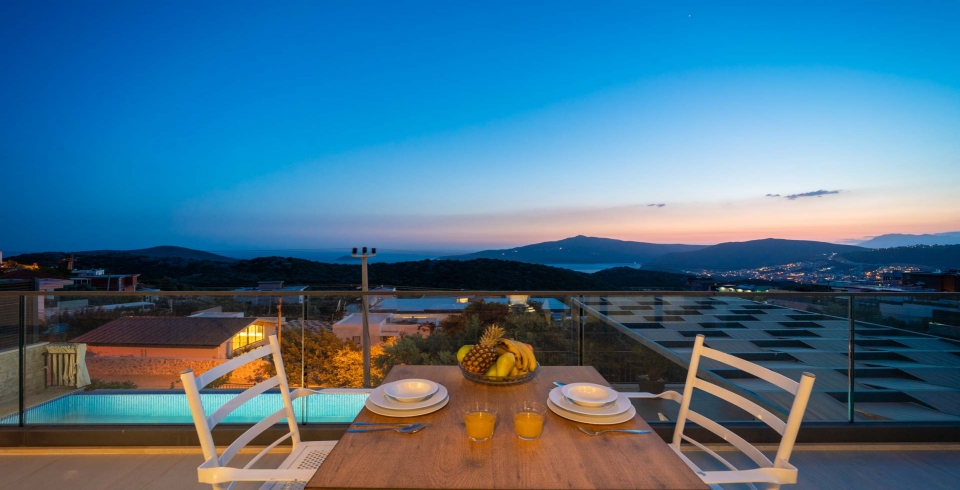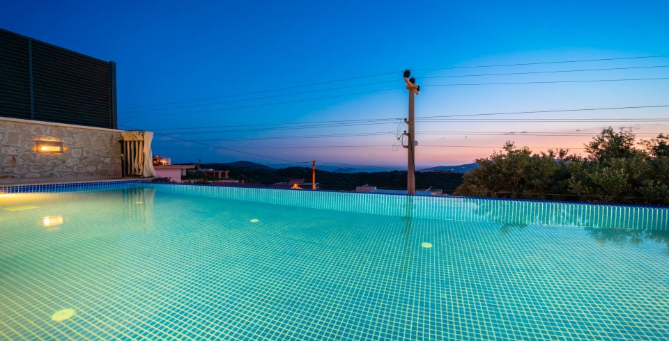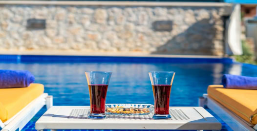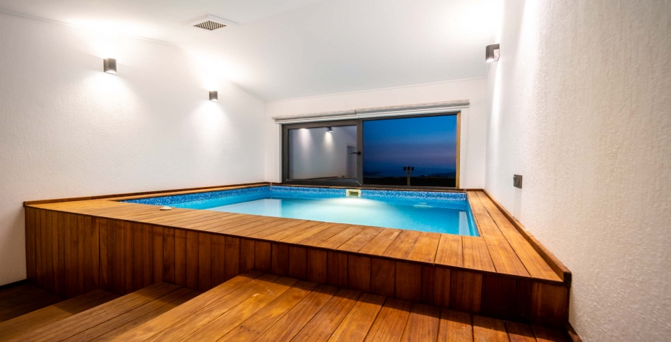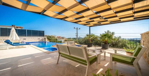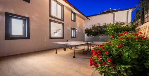 Villanın dış alanında geniş bir havuz terası, şezlonglar, oturma grubu, masa tenisi alanı ve barbekü yer alır. Tamamen korunaklı yapısı sayesinde muhafazakâr aileler için güvenli ve rahat bir tatil ortamı sağlar. Ayrıca villada bulunan hidro-masaj sistemli kapalı havuz, serin kış aylarında da tatil keyfini sürdürmek isteyen misafirler için idealdir.
