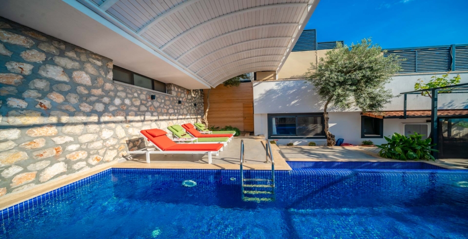 Kalkan’ın sessiz ve huzurlu bölgelerinden biri olan Kördere’de konumlanan Villa Therapy Aqua, doğanın içinde konforlu bir konaklama deneyimi sunan özel bir tatil villasıdır. Modern mimarisi ve zarif tasarımıyla öne çıkan villa, 2 yatak odasıyla 4 kişilik konaklama kapasitesine sahiptir. Özellikle balayı çiftleri ve muhafazakâr aileler için tasarlanmış olan bu villa, hem doğayla iç içe huzurlu bir atmosfer hem de şehir merkezine yakın bir konum avantajı sunar.