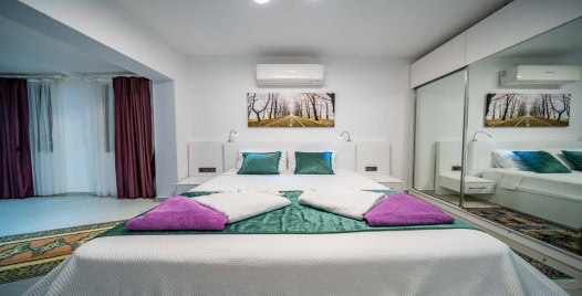 1. Yatak Odası : Bir adet çift kişilik yatak, komodin, elbise dolabı, makyaj masası, klima, banyo ve tuvalet bulunmaktadır.