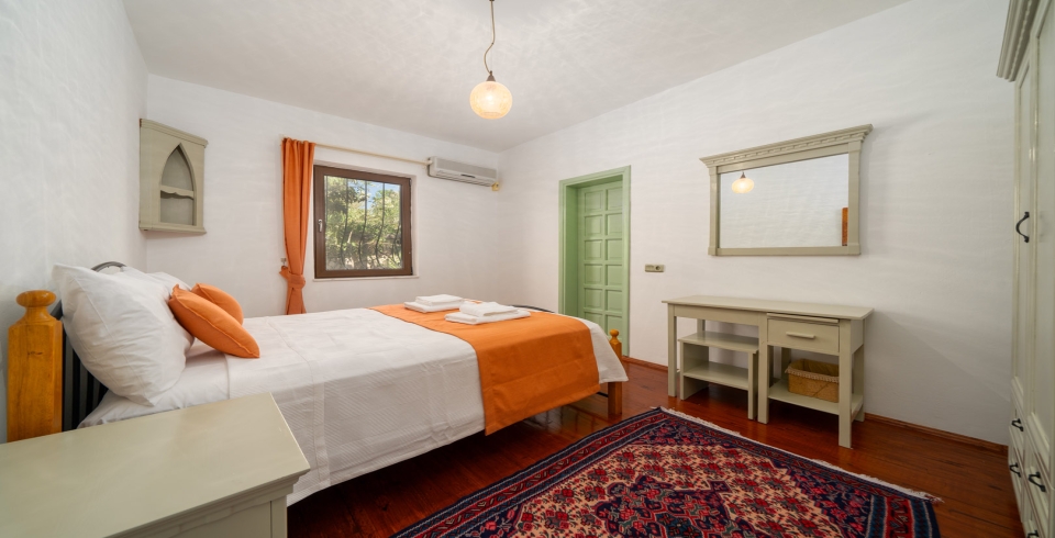 1. Yatak Odası : 1 adet çift kişilik yatak, klima, komodin, makyaj masası, elbise dolabı, banyo ve lavabo bulunmaktadır.