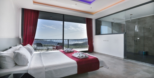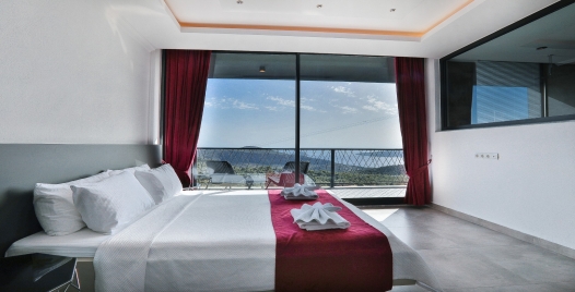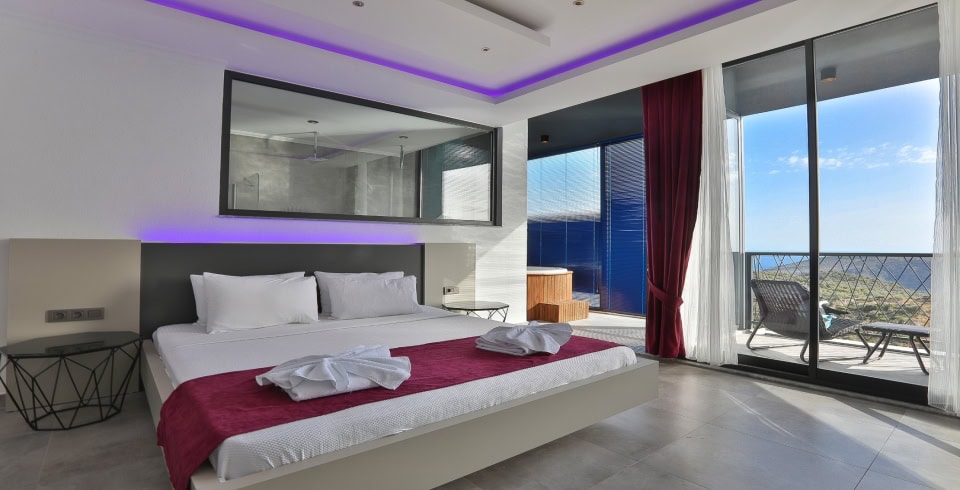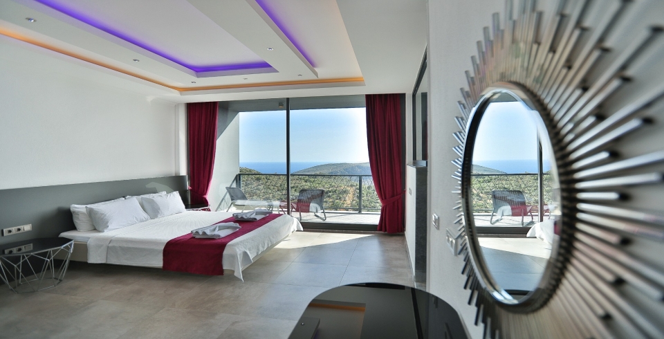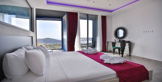 1. Yatak Odası : 1 adet çift kişilik yatak, klima, komodin, elbise dolabı, makyaj masası, jakuzi, balkon, banyo ve tuvalet bulunmaktadır.