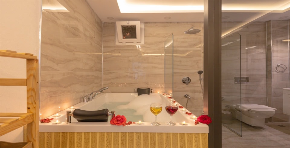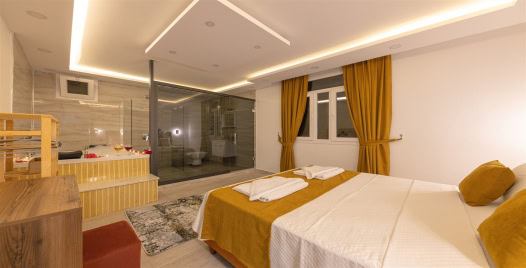 1.Yatak Odası: 1 adet çift kişilik yatak, klima, makyaj masası, jakuzi, banyo ve lavabo bulunmaktadır.