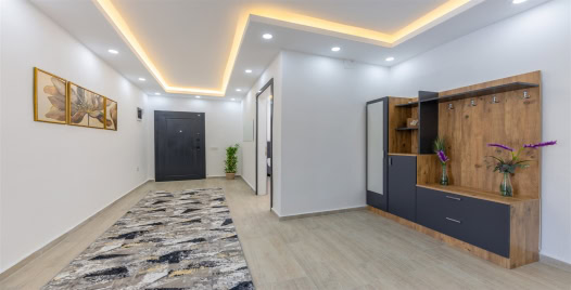 Mutfak: Amerikan mutfak içerisinde yemek masası, buzdolabı, 4'lü ocak, fırın, çamaşır makinası, bulaşık makinası, tos makinası, su ısıtıcı bulunmaktadır.