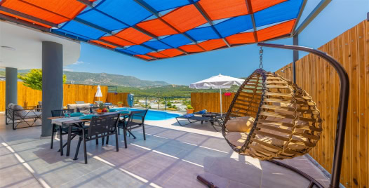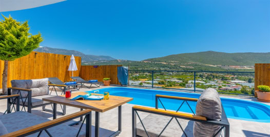 Kalkan Yeşilköy mevkisinde bulunan Villa Tuana, 2 yatak odalı 4 kişi konaklama kapasiteli havuzu korunaklı villadır. 2023 yılında inşaatı tamamlanan villamızın ebeveyn yatak odasında jakuzi bulunmaktadır. Çocuklu ailelerimizin de düşünüldüğü villamızda küçük bir oyun alanı mevcuttur. Muhteşem doğa manzarası eşliğinde tüm bir yılın yorgunluğunu üzerinizden atabileceğiniz Villa Tuana sizleri bekliyor.