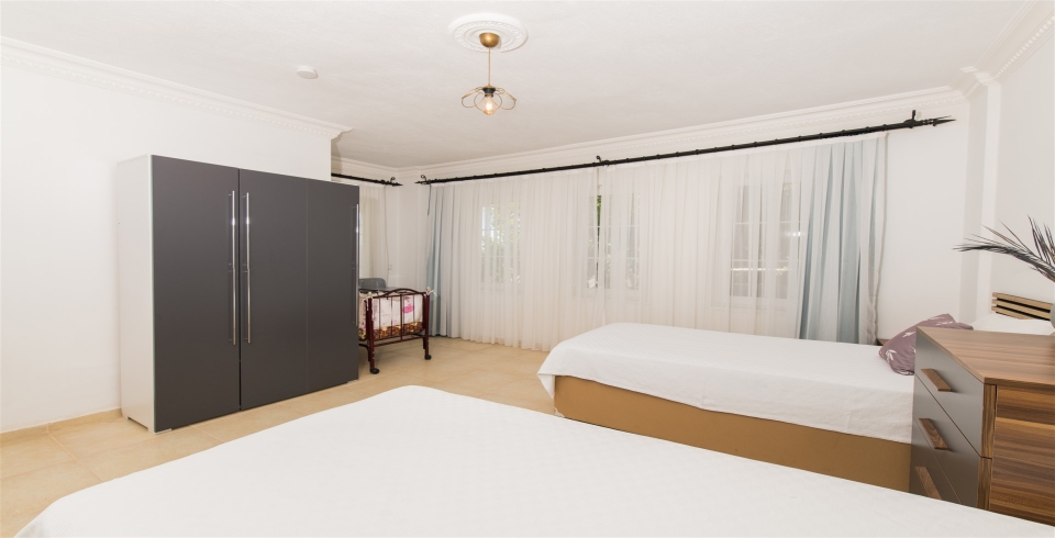 4. Yatak Odası: İki adet tek kişilik yatak,klima, elbise dolabı,komodin, makyaj masası, banyo ve tuvalet bulunmaktadır.