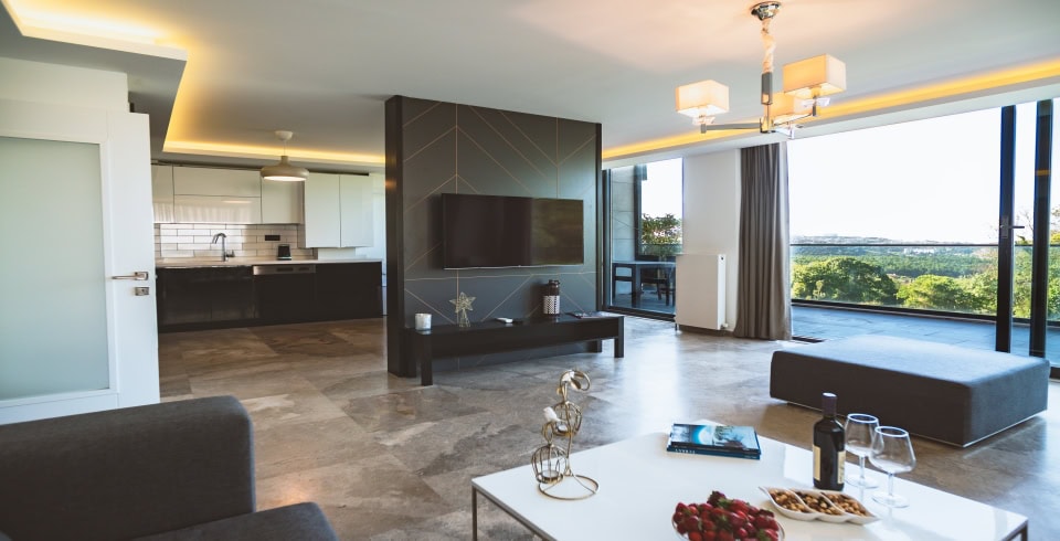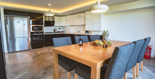 Mutfak: Buzdolabı, Bulaşık makinesi, ankastre seti, Mikrodalga fırın, su ısıtıcısı, 8 kişilik yemek takımı ve tüm mutfak gereçleri bulunmaktadır.