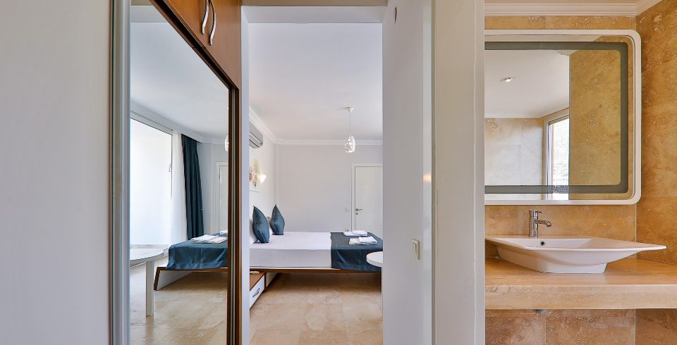 6. Yatak Odası : 1 adet çift kişilik yatak, elbise dolabı, komodin, klima ve banyo bulunmaktadır.